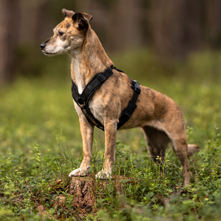 all black Geschirr mit Leo Webband an Brust und Rücken