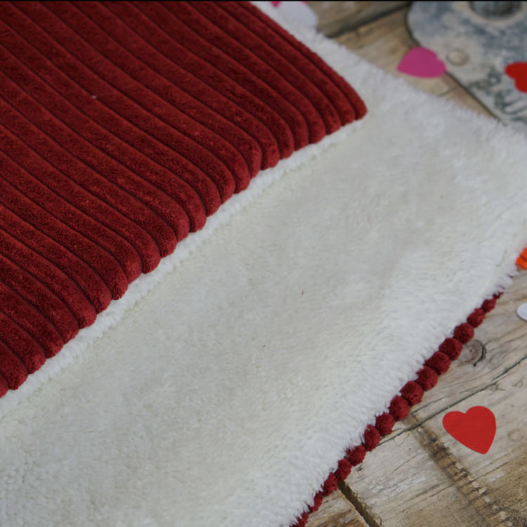 Material: Breitcord in Rot / Kuschelstoff in Cremeweiß
